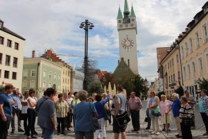 Der traditionell am ersten Augustwochenende stattfindende Ausflug, der – wie immer gemeinsam vom Pfarrgemeinderat und der KAB angeboten wurde – führten in diesem Jahr die 29 Teilnehmer nach Straubing. Pünktlich um 7.00 Uhr starteten die der Gründl-Bus mit Fahrer Werner vom Kirchplatz. Um 8.30 Uhr wurde Pause gemacht auf dem Parkplatz Schlossberg bei Naabburg und alle Teilnehmer erfreuten sich an dem leckeren Frühstück, welches von der Frauengruppe wieder souverän vorbereitet wurde, Nach der Stärkung wurde die Fahrt bis Straubing fortgesetzt. Um 10 Uhr trafen die KABler die Stadtführerin zur Stadtführung und gemeinsam ging es in Richtung Gäubodenmuseum. Auf dem Weg dorthin zeigte die Stadtführerin das Geburtshaus des wohl bekanntesten Straubingers, des Optikers und Physikers Joseph von Fraunhofer. Im Gäubodenmuseum wurde der weltberühmte Straubinger Römerschatz und einmalige Schmuck- und Waffenstücke der Bajuwaren bewundert. Neben sonstigen archäologischen Fundstücken präsentierten sich vor allem sakrale Kunst und Volksfrömmigkeitgkeit sowie die Stadtgeschichte, z.B. „Unter Kurfürst und König“. Die archäologischen Bestände des Museums gaben einen Überblick über die Besiedelung des Straubinger Raums von der Jungsteinzeit bis hin zu den Anfängen der bayerischen Landesgeschichte. Anschließend flanierte die Gruppe bei schönem Wetter über den Stadtplatz, die rührige Stadtführerin erzählte zu einzelnen Gebäude Details, z. B. die Lebensgesichte von Agnes Bernauer, die, da nicht standesgemäß und mit dem König liiert, in der Donau ertränkt wurde. Mittag gegessen wurde in der Wirtschaft: „Geiss“. Durch die telefonische Vorbestellung ließ das leckere Essen nicht lange auf sich warten.